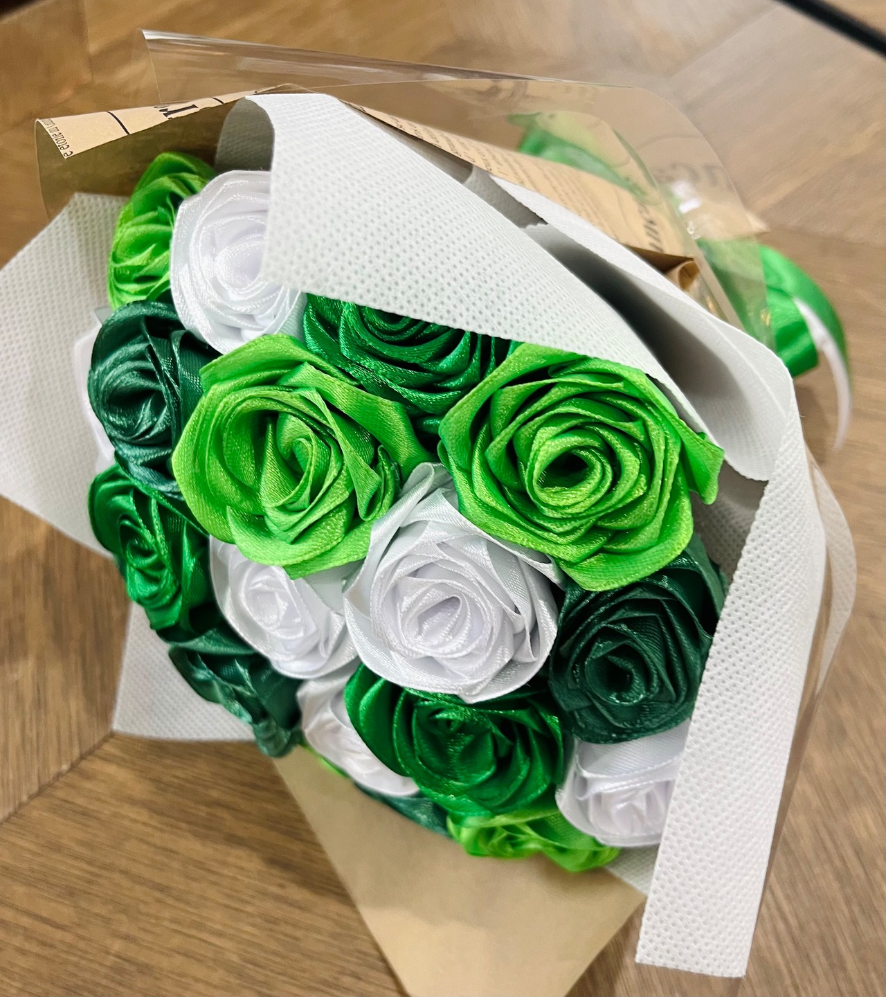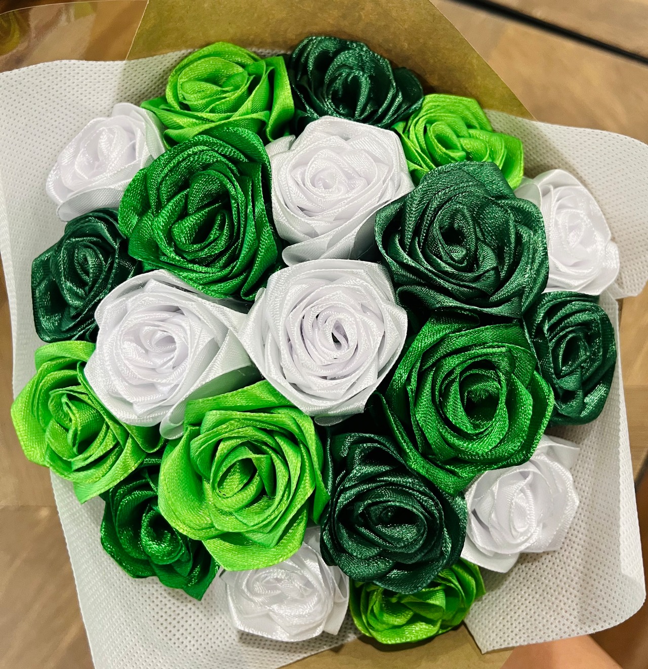 ○サテンリボンのミニブーケ (グリーン)